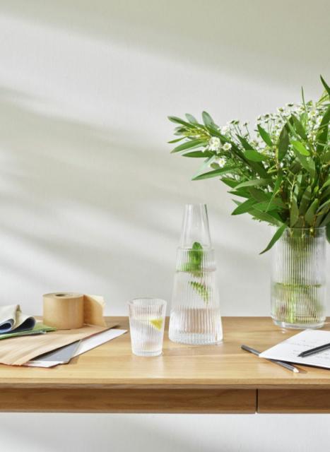 Stilsicherer Tafelpartner, die Stelton Karaffe 1 l inkl. Glas „PILASTRO“ Die Stelton Karaffe 1 l inkl. Glas „PILASTRO“ gehört zur gleichnamigen Geschirrkollektion des Designers Francis Cayouette. Im geriffelten Art-déco-Stil aus Klarglas angefertigt, besitzt das Set moderne Finesse. Die vulkanförmige B/H ca. 10,5 x 27 cm große 1-Liter-Flasche eignet sich für Wasser, Schorlen und Säfte. Im 0,71 kg schweren Set-Paket inkludiert sind zwei Gläser mit je 0,15 Liter Fassungsvermögen. Nach Gebrauch können Sie das Set bis maximal 55 C in der Spülmaschine reinigen. Servieren Sie Getränke aus der Stelton Karaffe 1 l inkl. Glas „PILASTRO“! Angaben zum Hersteller Stelton A/S Christianshavns Kanal4 1406Copenhagen , Dännemark [email protected]